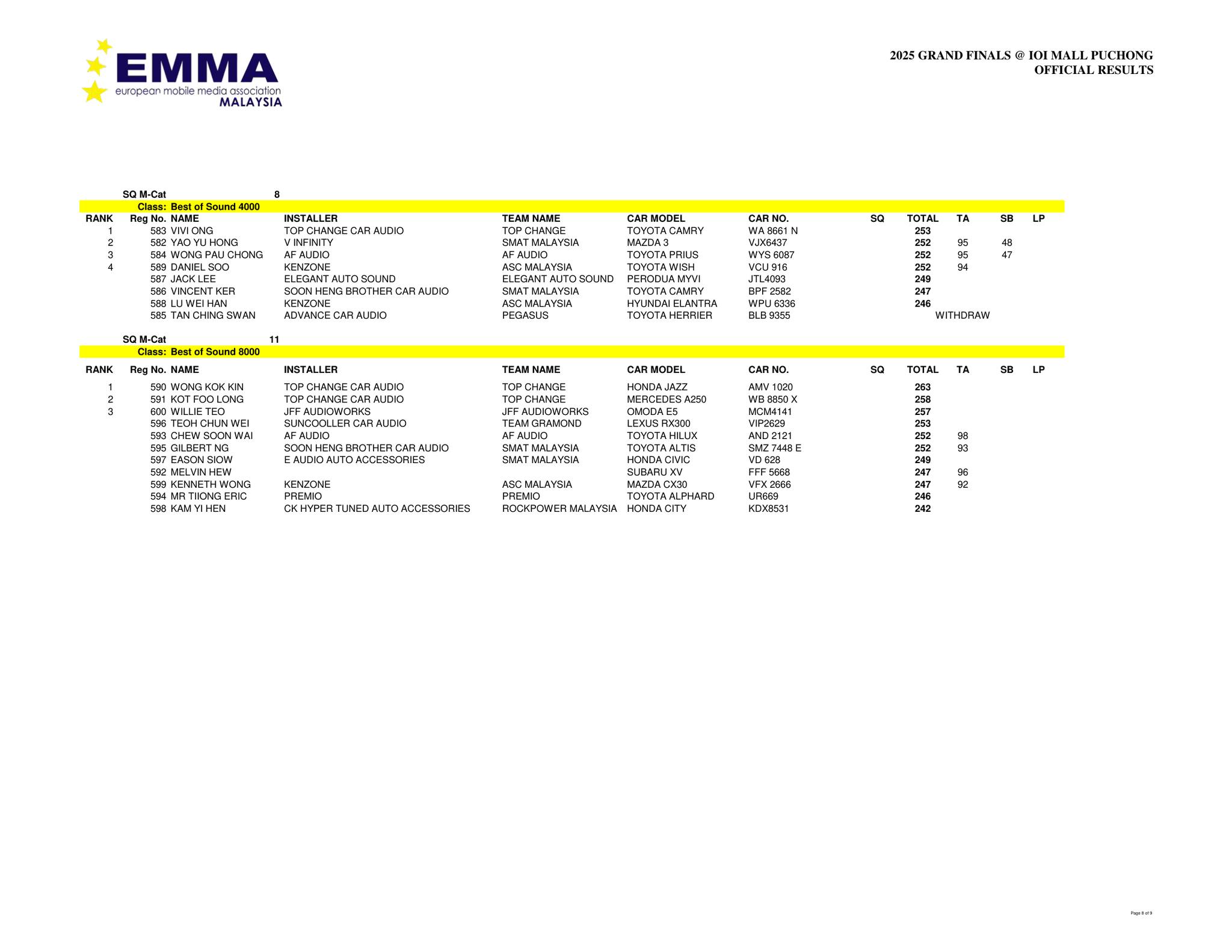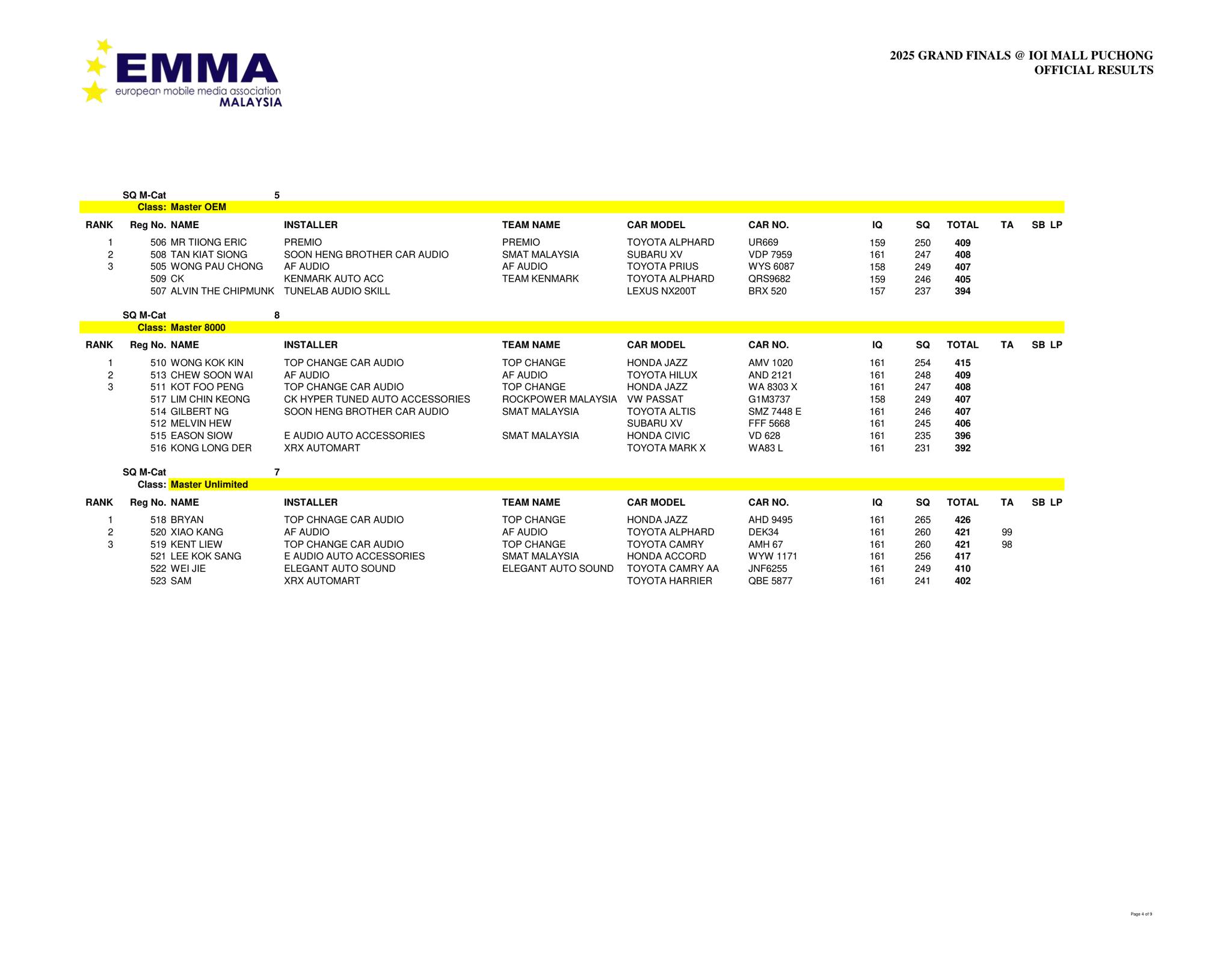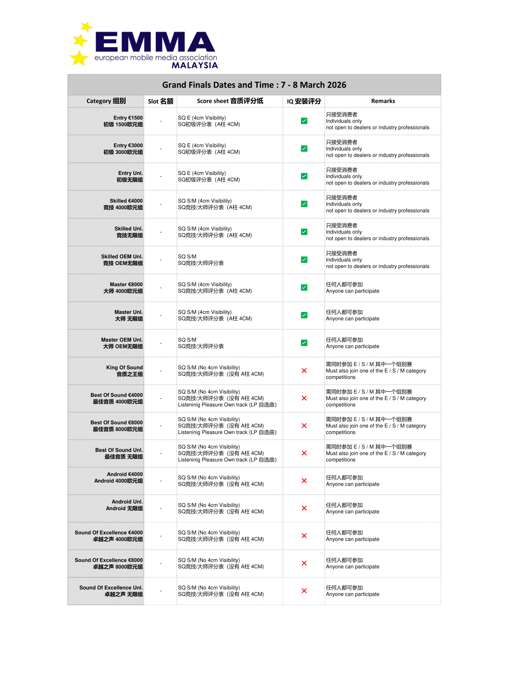 Official Timetable To be released after 23 Jan 2026. The full schedule for sound quality judging, ESQL/ESPL measurements, and the awards ceremony will be published here shortly after registration closes.